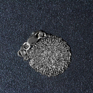 This diamond cut cable link chain comes in 14k white gold and has a width of 0.87 millimeters.