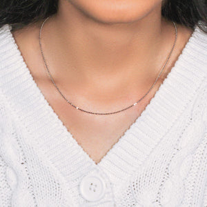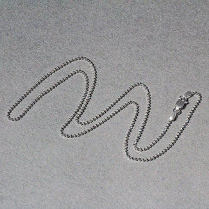 This diamond cut bead chain comes in 14k white gold and has a width of 1.10 millimeters.