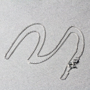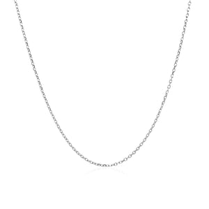 This diamond cut cable link chain comes in 14k white gold and has a width of 0.8 millimeters.