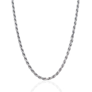 This classic chain crafted in gleaming sterling silver with rhodium polish featuring a diamond cut, rope type design, it had a width of 3.6 millimeters and secured with a lobster clasp.