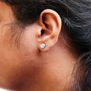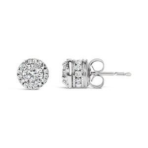 Embrace understated elegance with our Diamond Hidden Halo Stud Earrings, crafted from gleaming 10K white gold. Adorned with 50 natural round diamonds totaling 1.0 cttw, each stone set in a secure 4-prong setting. The H-I color diamonds dazzle with captivating brilliance. The hidden halo design adds an extra touch of glamour, making these earrings a perfect choice for any occasion. Finished with push-back closures, they offer both comfort and security. Elevate your style with the timeless allure of diamonds, adding a touch of sophistication to every ensemble.
