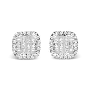 10K White Gold 7/8 Cttw Diamond Princess Composite and Halo Stud Earrings (I-J Color, I1-I2 Clarity)
