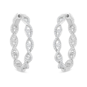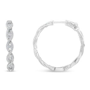 • Style - elegant 10k white gold hoop earrings made with round diamonds in a prong setting