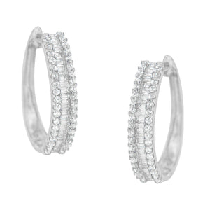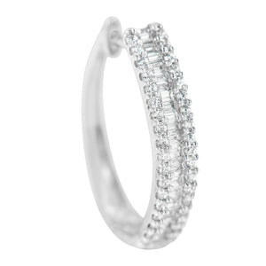- Style - stunning 10k white gold hoop earrings made with round and baguette cut diamonds