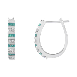 Modern hoop earrings that use genuine diamonds with a natural white and treated blue color. Each earring is made with 10k white gold and it features round-cut and baguette-cut diamonds in a channel setting . The total diamond weight for this piece is 1/2ct and it features a total of 40 diamonds. This fine jewelry piece comes with clip on and free gift pack aging. Ideal for any type of special occasion or event.
