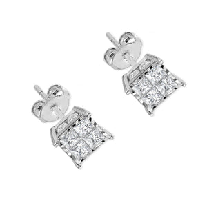 - Original classics square earrings in 10k white gold and diamonds in miracle setting