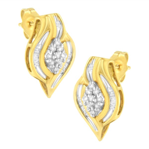 10K Yellow Gold 1/3 cttw Round-Cut Diamond Cluster and Swirl Stud Earrings (J-K Clarity, I2-I3 Color)