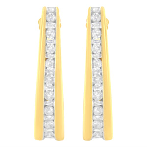 10K Yellow Gold 1 cttw Channel Set Diamond J-Hoop Earrings (H-I Clarity, I1-I2 Color)