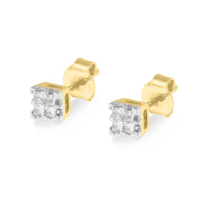 - A pair of glittering princess cut diamonds is perfectly set in elegant yellow gold for a day to night look.