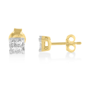 Own a pair of earrings for a princess with these delicate diamond studs set in 10k yellow gold. The clarity and sparkle of the 0. 26 carat princess cut diamonds pairs perfectly with the luxurious yellow gold. Treat her to this regal set for her birthday, mother’s day, valentine’s day, christmas, or just because.