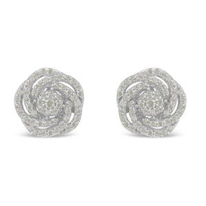Delicate flower stud earring with a modern design that resembles a rose. The structure is made with 10k white gold and it features 108 round-cut genuine diamonds in a prong setting. The total diamond weight is 1/2ct. This fine jewelry piece is extremely sparkly and it is suitable for both, casual and formal events. It comes with a screw back, as well free gift packaging.