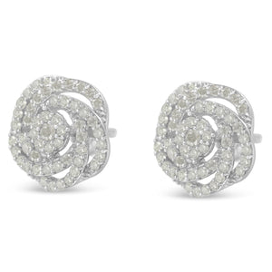 10KT White Gold Diamond Flower Stud Earring (1/2 cttw, I-J Color, I1-I2 Clarity)