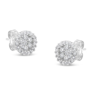 14K White Gold 1/2 Cttw Brilliant-Cut Diamond Halo-Style Cluster Round Button Stud Earrings (H-I Color, I1-I2 Clarity)