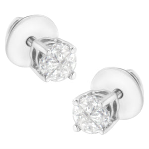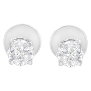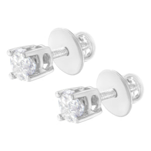 Adorn yourself with these lovely and sparkling solitaire earrings. Each stud is embellished with 4 natural, pie-cut diamonds in a classic prong setting. The diamonds have a total carat weight of 1/2 cttw and are set in gleaming 14k white gold. These come with a push back mechanism for a safe and secure fit on your ears. These gold and diamond earrings are the perfect accessory for everyday wear.