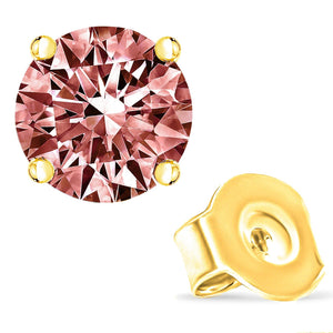 • A brilliant choice – dazzle with these beautiful diamonds studs! these timeless 14k white gold stud earrings feature stunning fancy pink lab grown round brilliant cut diamonds in a classic 4 prong setting. They have pushback closures with notched posts and friction backs, which keep these pierced earrings safe and secure on your ears for comfortable, worry-free wear all day long. Each earring is set with a. 25 carat diamond for a total weight of. 50 carats.