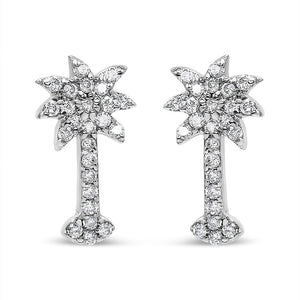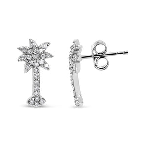 Remind her of the beach with these sparkling and tropical diamond palm tree stud earrings. Crafted in from cool white 14K gold , each shimmering earring features a gleaming trunk and dazzling shady fronds. Radiant with 1/4ct. t.w. of diamonds and a brilliant buffed luster, these dainty stud earrings secure comfortably with friction backs.