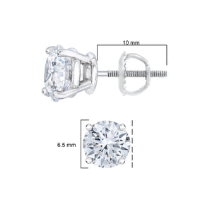 14K White Gold 2.00 Cttw Lab Grown Round Brilliant-Cut Diamond Classic 4-Prong Stud Earrings with Screw Backs (F-G color, VVS2-VS1 Clarity)