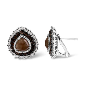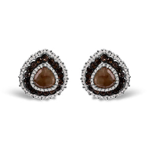 Introducing a mesmerizing piece that exudes elegance and allure, these 14K White Gold Trillion Shaped Triple Halo Stud Earrings are a true masterpiece. With a remarkable 3 3/4 carat total weight, these earrings feature a magnificent array of 176 natural diamonds, showcasing both rose and round shapes. The fancy color diamonds, ranging from enchanting browns to dazzling H-I hues, are beautifully set in a prong setting, ensuring maximum brilliance. Crafted for women who appreciate the finer things in life, these stud earrings boast a unique design that effortlessly captures attention. The omega earring findings provide a secure and comfortable fit, allowing you to showcase your impeccable style with confidence. Indulge in the luxury of these exquisite earrings, perfect for any occasion where you want to make a statement.