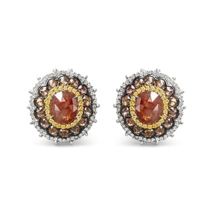 Introducing a captivating masterpiece that exudes elegance and sophistication. Crafted with meticulous attention to detail, these 14K White Gold Stud Earrings boast a remarkable 6 1/2 carat total weight of exquisite Rose and Round Cut Fancy Colored Diamonds. With 174 dazzling diamonds, their radiance is simply unparalleled. The enchanting triple halo design, adorned with a mesmerizing array of Brown, Yellow, and H-I colored diamonds, beautifully frames your face, adding a touch of glamour to any ensemble. Set in a combination of bezel and prong settings, these earrings ensure both security and brilliance. The Omega earring findings provide a comfortable fit, making them perfect for women who appreciate refined luxury. Indulge in the allure of natural diamonds and embrace your inner diva with these stunning earrings.