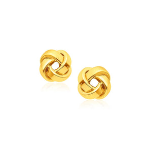 Crafted in 14k yellow gold, these stud earrings feature a classic love knot design in a polished finish and are secured with a postback.
