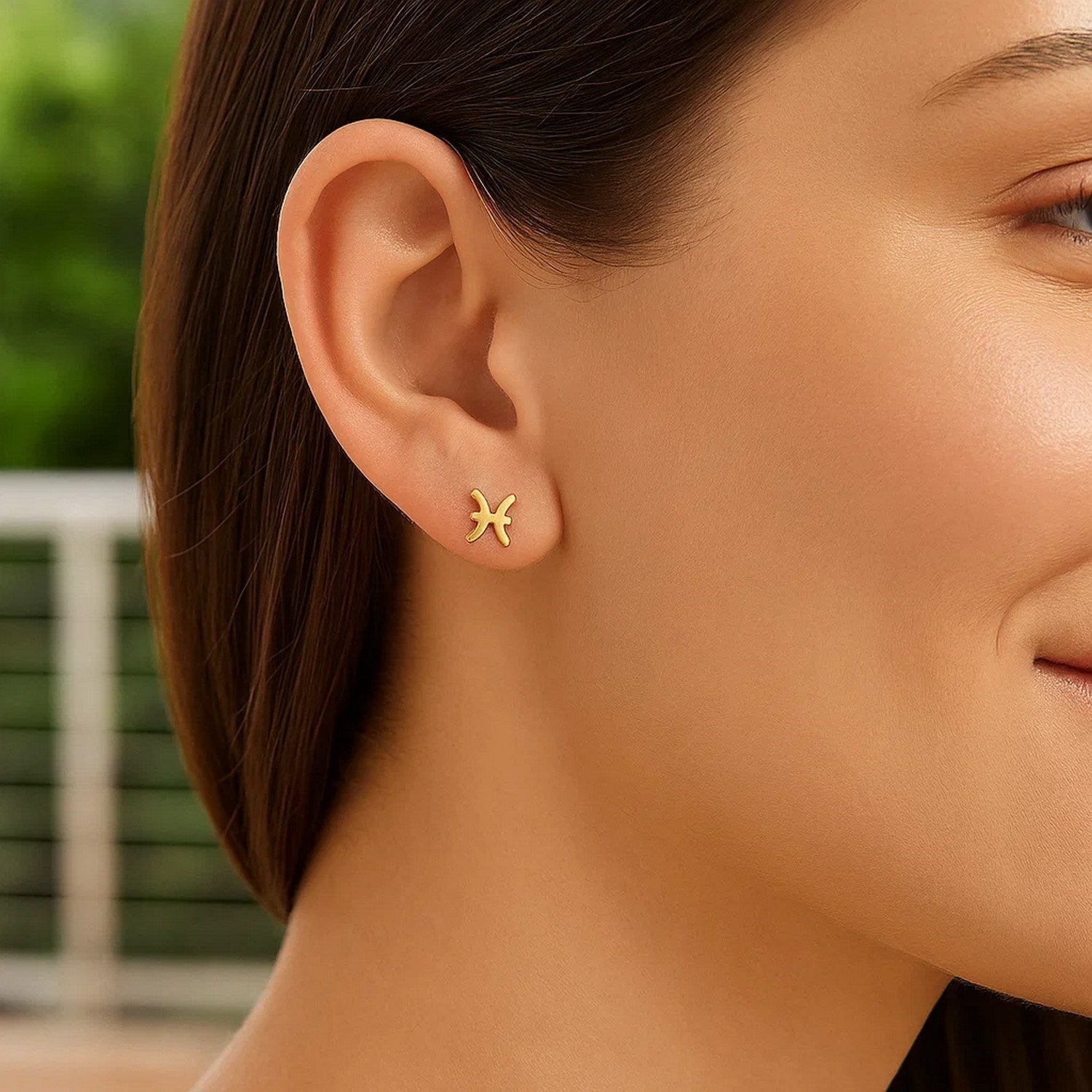 This set of Pisces Stud earrings is beautifully crafted in 14k yellow gold with a high polish finish & secures with universal backs. These beautiful studs are hand crafted & such a beautiful piece for that pisces in your life. Don't forget the matching necklace!