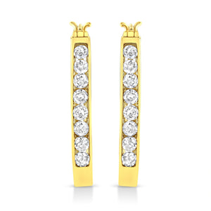 14k Yellow Gold Plated .925 Sterling Silver 1.0 Cttw Channel Set Brilliant Round Cut Diamond Hoop Earrings (J-K Color, I2-I3 Clarity)