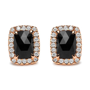 18K Rose and White Gold 1/4 Cttw Round Diamond and 8x6mm Cushion Cut Black Onyx Gemstone Halo Stud Earrings (G-H Color, SI1-SI2 Clarity)