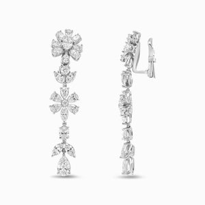 18K White Gold 10 1/4 Cttw Fancy Diamond Mixed Cluster Floral Dangle Drop Earrings (VS1-VS2 Clarity, G-H Color)