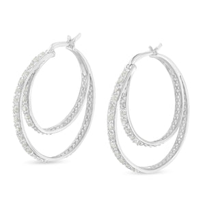 .925 Sterling Silver 1/2 cttw Miracle-Set Diamond Double Hoop with Latchback Earrings (I-J Color, I3 Clarity)
