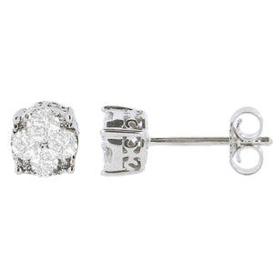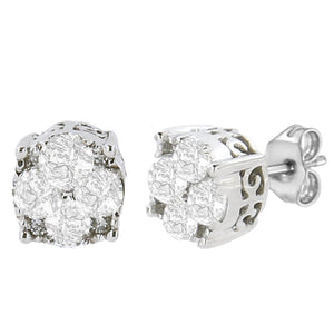 - For the modern princess – you deserve jewelry as lovely as you are! these understated 925 sterling silver round composite diamond stud earrings feature round brilliant cut diamonds in two different sizes in a cluster that creates the illusion of one large round diamond in a classic 4-prong setting. They have pushback closures with notched posts and friction backs, which keep these pierced earrings safe and secure on your ears for comfortable, worry-free wear all day long.