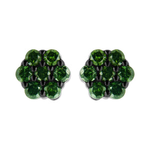 You will fall in love with these classic cluster stud earrings. A must have for any serious jewelry collection, these. 925 sterling earrings boast an impressive 1/2 carat total weight of treated green diamonds with seven stones each. The earrings are floral clusters with seven round, brilliant cut diamonds in shared prong settings. The earrings have stacked open galleries. The stud style earrings have pushback closures. These classic, elegant floral cluster stud earrings make a great gift for any special occasion! whether worn for daytime glamour or evening sparkle, these earrings are gorgeously versatile. Give her a gift that will perfectly complement her favorite ensemble.
