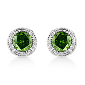 - A brilliant choice – why choose imitation diamonds when you can have the real thing? these green diamond studs offer a modern twist on the classic stud design. Each green diamond is 4-prong set into a. 925 sterling silver mounting which is embellished with a fancy milgrain design on the edge. Each earring secures on your ear with a sturdy screw back