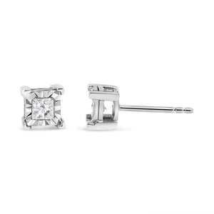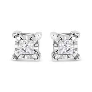 These beautiful diamond stud earrings give an elegant look to any occasion. Each stud features a dazzling princess cut diamond in a miracle setting that allows the diamond to appear larger. 1/4ct tdw of diamonds are showcased in these. 925 sterling silver studs that secure with a push back mechanism.
