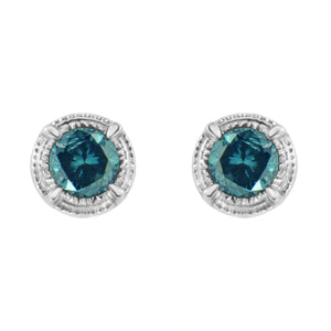 - A brilliant choice – why choose imitation diamonds when you can have the real thing? these blue diamond studs offer a modern twist on the classic stud design. Each blue diamond is 4-prong set into a. 925 sterling silver mounting which is embellished with a fancy milgrain design on the edge. Each earring secures on your ear with a sturdy screw back
