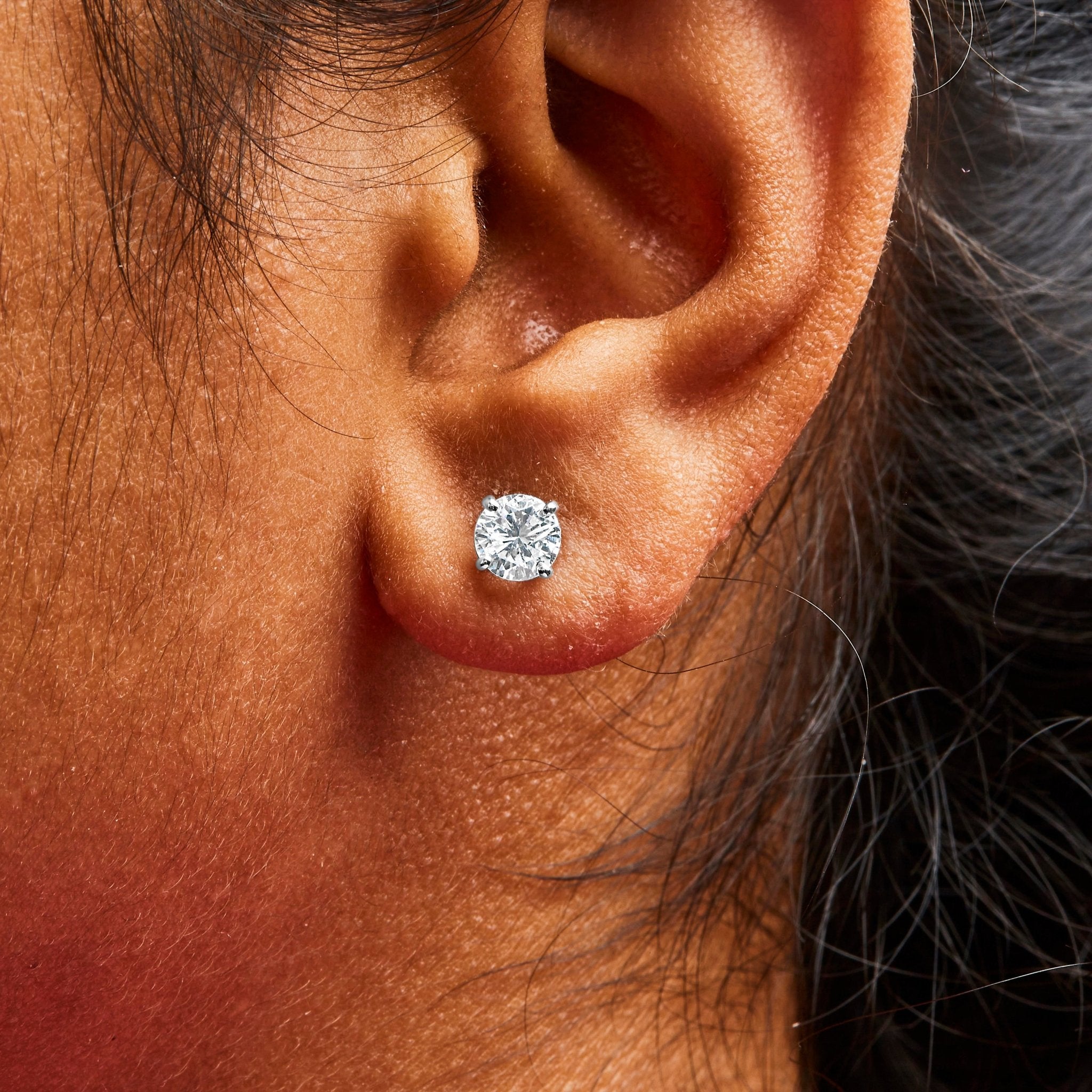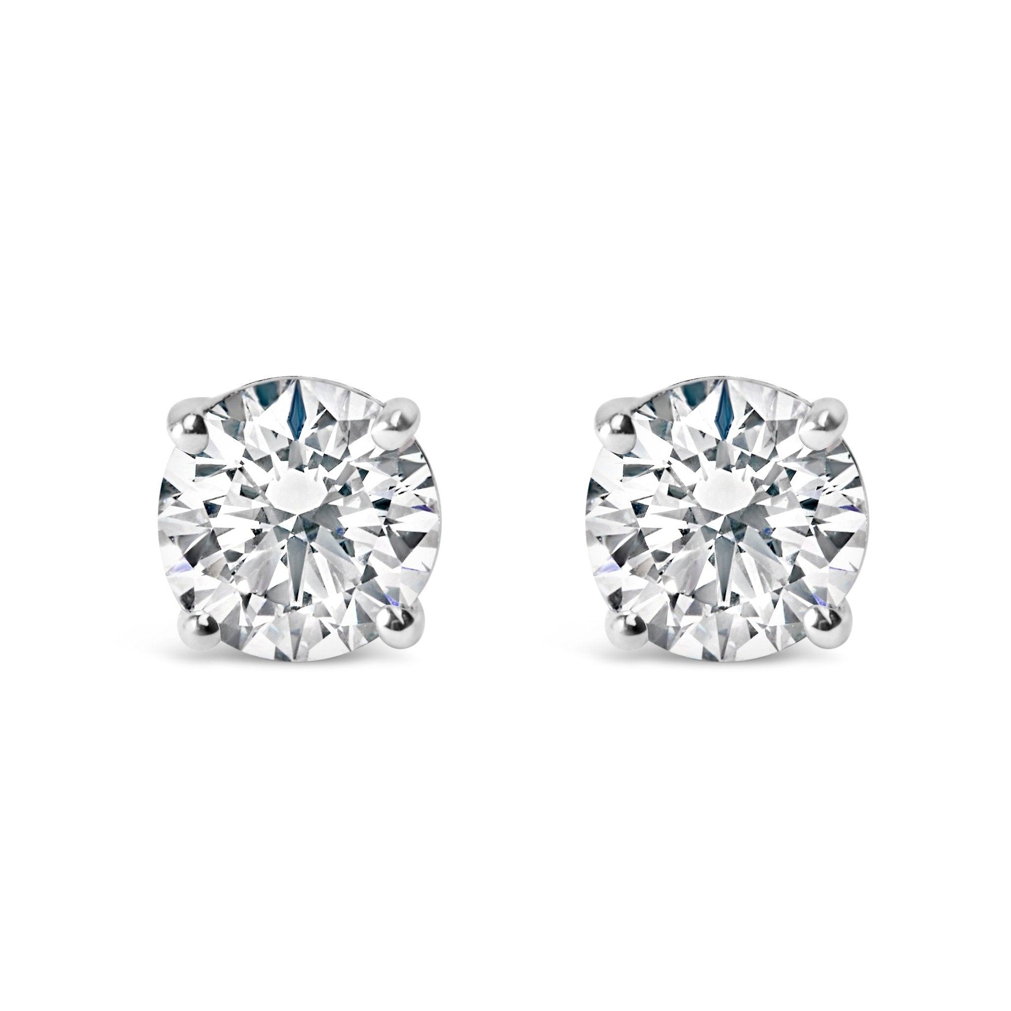 IGI Certified 14K White Gold 1 1/2 Cttw Round Diamond Solitaire Stud Earrings with Screwbacks (G-H Color, I1-I2 Clarity)