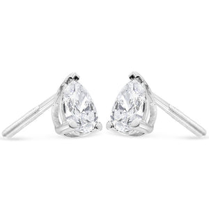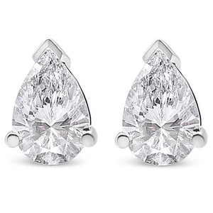 A timeless jewelry essential, these white diamonds studs will bring unparalleled sparkle to your ears. These elegant lab grown diamond stud earrings feature a 3-prong prong setting in a glistening 14k white gold metal. The 2 round, brilliant lab-grown diamonds radiate a beautiful white sparkle as they float within the three-prong setting of these 14k white gold stud earrings. Each lab-grown diamond is crafted to the highest standards and has a VS2-SI1 clarity grade. The studs include dazzling pear-cut lab grown diamonds with a total weight of 1/2 carat and come with a push-back clasp for a secure and comfortable fit.