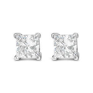 14K White Gold 1.0 Cttw Princess Cut Lab Grown Diamond Solitaire Stud Earrings (F-G Color, VS2-SI1 Clarity)