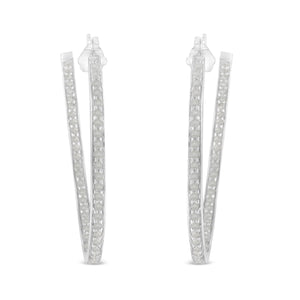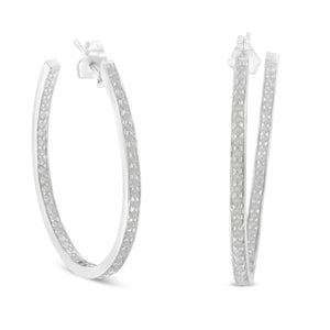 These glamorous 10k white gold hoop earrings showcase 1ct of round cut diamonds. The prong set diamonds inlay half the inside and outside of the hoops giving them maximum sparkle. These inside out hoop earrings are the perfect gift for that trendy, special someone in your life.