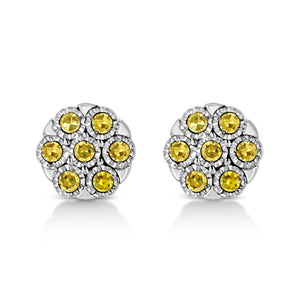 You will fall in love with these classic cluster stud earrings. A must have for any serious jewelry collection, these. 925 sterling earrings boast 0. 25 carat total weight of treated black diamonds with seven stones each. The earrings are floral clusters with seven round diamonds in miracle settings. The stud style earrings have pushback closures. These classic, elegant floral cluster stud earrings make a great gift for any special occasion! whether worn for daytime glamour or evening sparkle, these earrings are gorgeously versatile. Give her a gift that will perfectly complement her favorite ensemble.