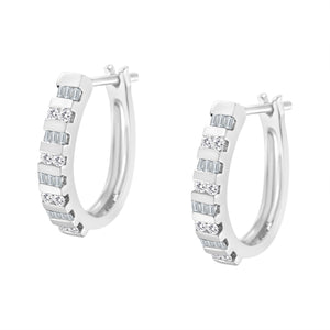 - Irresistible glamour – who can say no to the dazzle of diamonds? these 10k yellow gold hoops are designed to be a timeless, statement piece. Round and baguette-cut diamonds line up the outer of these earrings and shine in a channel setting. You can't go wrong with these 1. 00 cttw hoops. The clip backs keep these pierced earrings safe and secure on your ears for comfortable, worry-free wear all day long.