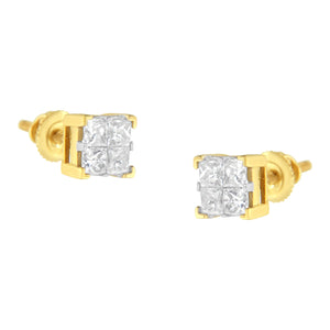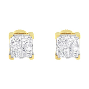 Set the stage for love with these sparkling diamond stud earrings. Crafted in warm 10k yellow gold, each earring features a squared composite of 4 sparkling princess-cut diamonds. Radiant with 3/4 ct. T. W. Of diamonds and a brilliant buffed luster, these post earrings secure comfortably with screw backs.