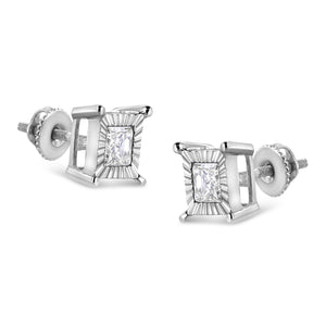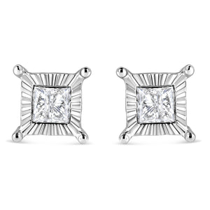 .925 Sterling Silver 1.0 Cttw Miracle Set Princess-cut Diamond Solitaire Stud Earrings (H-I Color, I2-I3 Clarity)