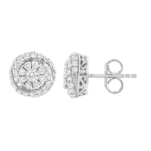 These gorgeous studs are made with a stunning 1 ct tdw floral cluster design. Created in the finest. 925 sterling silver, these earrings are made with lab-grown diamonds in a prong setting. The diamonds are sustainable and ethical, so you can feel good about this purchase. These earrings come with a push back mechanism for a more secure fit.