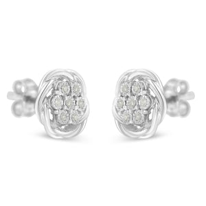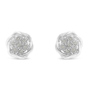 Feminine and delicate, add a touch of whimsical and romantic character to your evening wear or business ensemble with our art deco-inspired sterling silver diamond swirl cluster stud earrings. Impeccably crafted, it features 14 round-cut diamonds disposed around in a swirling. 925 sterling silver frame that radiates a chic and dramatic allure. With a traditional push back design, this floral diamond stud earrings for pierced ears offer a refined sense of graceful empowerment that speaks to stylish, confident women.