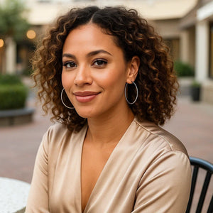 Bold shine meets the classic simplicity of round hoops in these eye-catching, large sterling silver hoop earrings. Earrings are held in place by endless clasps.