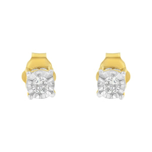 This charming pair of diamond studs features solitaire round brilliant cut diamonds. The classic design is crafted in yellow plated sterling silver making them the perfect to add sparkle to any outfit. The total diamond weight is 1/4 carat.