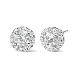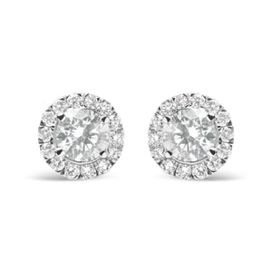 These stunning earrings are a true masterpiece, perfect for any woman looking to add a touch of glamour and elegance to her collection. The 14K white gold setting is the perfect canvas for the stunning lab grown diamonds, which are round in shape and total 2 carats in weight. With an F-G color and VS2-SI1 clarity, these diamonds are sure to sparkle and shine with every turn of the head. The halo design adds an extra touch of glamour, making these earrings truly one of a kind. With a total of 30 diamonds, these earrings are sure to be a showstopper at any event. The push back finding makes them easy to wear, while the prong setting ensures that the diamonds are securely in place. Whether you're dressing up for a night out or just looking to add some sparkle to your everyday style, these earrings are the perfect choice.