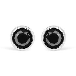 Introducing our exquisite .925 Sterling Silver Stud Earrings, adorned with 4.0 Cttw Round Brilliant-Cut Black Diamonds. Crafted with precision, these earrings feature a stunning bezel setting that enhances the beauty of the diamonds. The fancy color-enhanced black diamonds exude an air of mystery and elegance. With a total weight of 4.0 cttw, these earrings are a true statement piece. The screw backs ensure a secure fit, making them perfect for everyday wear. Designed for women who appreciate timeless beauty, these earrings are a must-have addition to any jewelry collection. The I2-I3 clarity of the diamonds adds a unique charm, making each earring truly one-of-a-kind. Elevate your style and embrace the allure of black diamonds with these captivating stud earrings. Each diamond is approximately 2 carats, for a 4 carat total weight. Silver is finished with a rhodium plating for extra luster.
