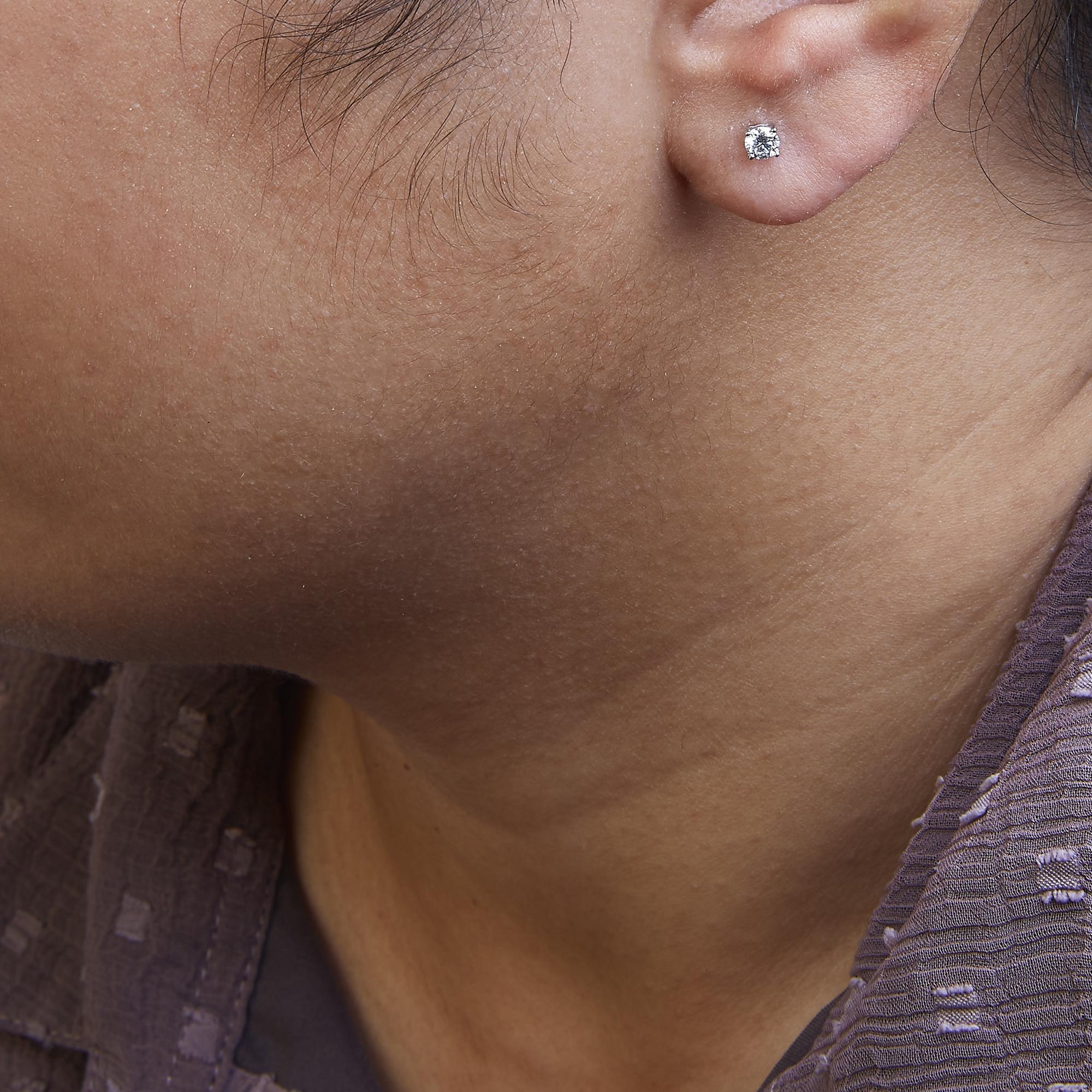 Unveil the epitome of elegance with these exquisitely crafted stud earrings, showcasing 1/5 carat of lab-grown, round brilliant-cut diamonds. Each gem, pristinely clear and scintillating with an F-G color and VS1-VS2 clarity, radiates unmatched brilliance. Encased in the timeless beauty of .925 sterling silver with a gleaming polished finish, these jewels are set in a classic four-prong setting, ensuring both security and a showcase that enhances their natural luminosity. Designed for enduring comfort, they come with secure backings that promise a fit as perfect as their craftsmanship. Ideal for adding a touch of luxury to every occasion, these earrings speak to those who cherish sustainable elegance and superior quality. Each diamond is approximately 1/10 Cttw for a 1/5 Carat total weight.