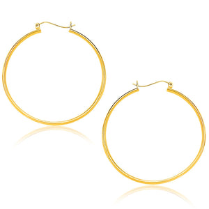 These timeless hoop earrings are crafted in 10k yellow gold and measure 40 millimeters in diameter, featuring a snap lock backing.